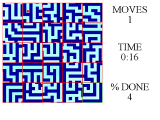Regular visitors probably have already realized that this is an updated version of a game that I released in December of 1999. This new version has been enlarged and now has a timer, move counter, and percentage done display.