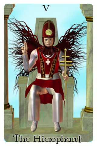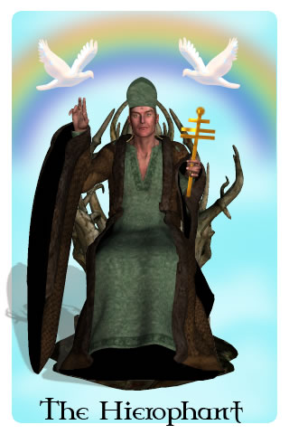 Traditionally, the Hierophant is the spiritual equivalent to the Emperor. He is a religious or spiritual leader. More modern interpretations has him symbolizing any organized institution including educational systems such as universities. Any system of beliefs can be represented as this is a card representing spiritual inspiration and does not reflect any particular set of beliefs.