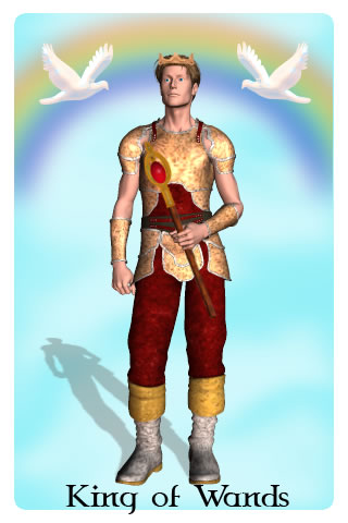 Dignified, vibrant and full of energy, the King of Wands is the master of his own destiny. The King of Wands leads by example. He sets an example by being a powerful leader. But this King is not without flaws. Besides his desire to be in center stage, he is neither modest nor shy. He expects all those around him to respect his authority. His authority, however, is based on experience so all the risks he takes have been weighed.