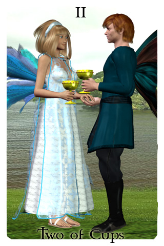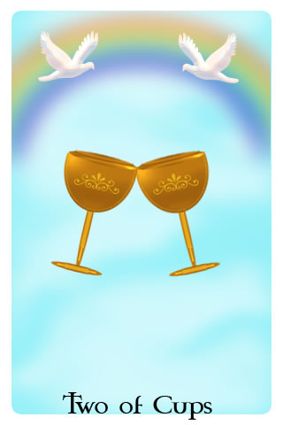 The Two of Cups can be considered to be a lesser version of the Lovers. This is a card about romance and establishing a bond between two people. Note that this bond does not necessarily have to be a romantic bond. Establishing a mutual understanding between two people can often be beneficial even if the results are unlikely to lead to romance.