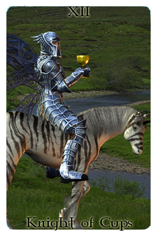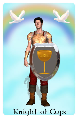 Often the Knight of Cups represents a real person in your life. This person may be temperamental but truly wants to have a romantic relationship and wishes that he can be a knight in shining armor for someone.