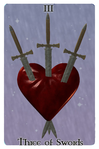 The Three of Swords is all about rejection. This card symbolizes dishonesty within a partnership. Who is being dishonest and how is a matter that needs inspection. If there is a third party with whom you have interest, the love triangle you are trying to form may be the dishonest aspect within your relationship. If your partner seems to be the dishonest one, perhaps it is time to let go. If your partner truly cares for you then your willingness to let him or her go may be what allows your relationship to strengthen.