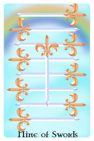 The Nine of Swords represents despair. You are overburdened by the feeling that you may have done something wrong. This suffering may all be in your mind. Wishing that you could go back to time and make changes does nothing to help you in the future. The truth may be that nothing you could change would have any impact on the outcome. This may be especially true if the problem is partially the result of a third party as that third party may intentionally trying to cause you grief while they pretend to be innocent.