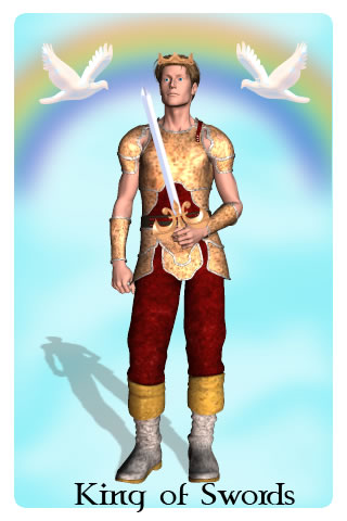 The King of Swords is all about analytical leadership. He is in control of the situation and his overassertive ways make this clear. While the King of Swords tries to be fair in his judgement, he does tend to have extremely high standards. The standards that the King sets may be high, but he personally tries to live up to them so they ultimately are fair. Still, his adherence to his principles can often result in him ignoring his emotional needs.